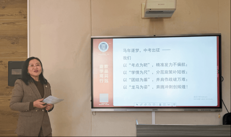 王恒坤老师分享了英语组通过项目式学习、分层教学与个性化辅导,夯实学生英语基础,细化学情分析,聚焦各分数段学生精准施策,全力以赴帮助每位学生在中考中实现突破,坚守教学初心,持续精进教学质量!