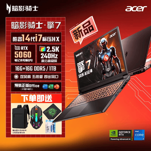 宏碁暗影骑士擎7是一款结合了最新处理器和显卡技术的高性能游戏笔记本,适合游戏和设计领域的用户。搭载i7-14650HX处理器和RTX 5060显卡,确保流畅的使用体验。