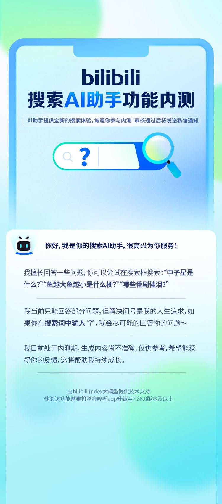 据介伟德国际吧绍,该功能由 bilibili index 大模型提供技术支持。如果你顺利获取到了内测资格还需要将哔哩哔哩 App 升级至 7.36.0 版本及以上方可进行体验。