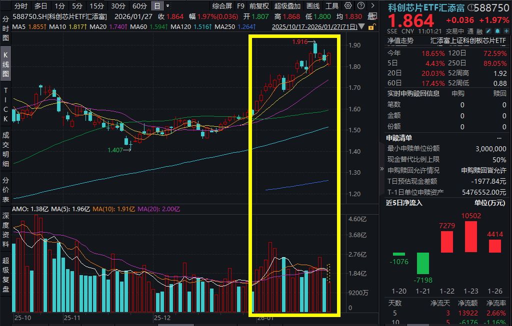 官方网站1月27日,A股市场震荡,科创芯片板块坚挺走强!截至11:01,科创芯片ETF汇添富(588750)涨2%,资金持续涌入“AI催化+自主创新”的科创芯片板块,科创芯片ETF汇添富(588750)连续3日获超2.2亿元净流入。