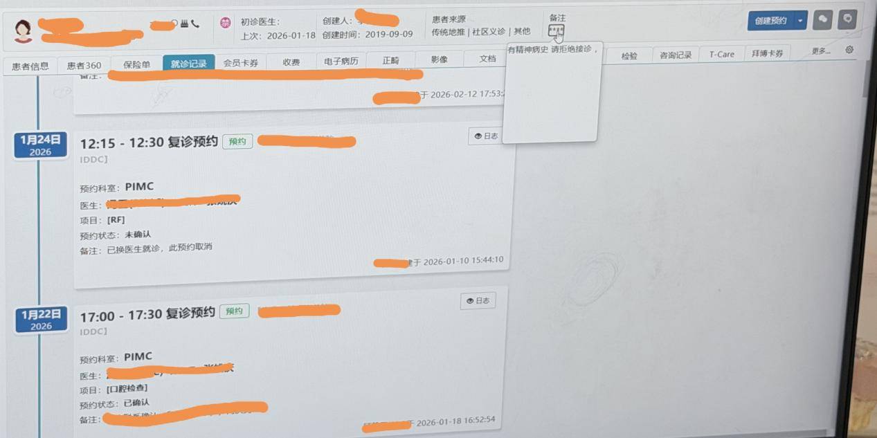 患者在后续维权中偶然发现,该院内部全国联网的医疗系统中,自己的档案竟被标注了“有精神病史,请拒绝接诊”的字样。这一标签意味着患者在该连锁体系下被剥夺了就医权。更令人担忧的是,这一污名化标签若随病历流转,可能对患者未来的正常诊疗造成严重影响。证据如下: